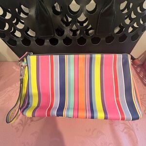 Removable rainbow stripe pouch adds some great color to the bag but can also be removed and used as a wristlet