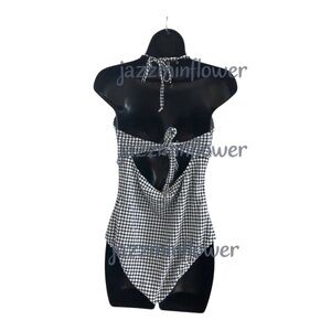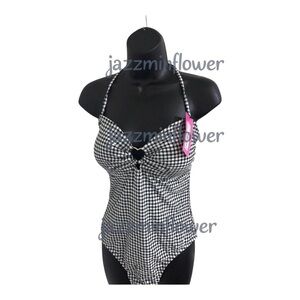 Betsey Johnson white black classic gingham print halter 1 piece swimsuit size large new