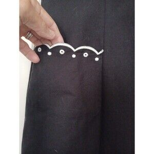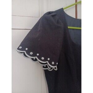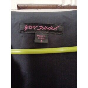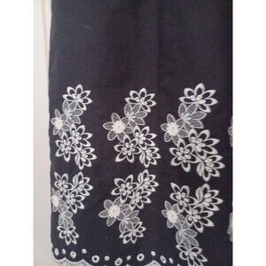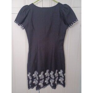 The Betsey Johnson embroidered mini dress in size 4 features a classic black with white flower pattern, making it perfect for various occasions such as weddings, parties, and business events. This preppy style dress has a round neck, short cap sleeves, and a side zip closure for easy wear. Made of lightweight cotton material, it is hand washable for convenient care. The A-line silhouette and knee-length design add a touch of elegance to this stylish and versatile dress. Perfect for all seasons, this Betsey Johnson dress combines a sophisticated look with a playful flair.