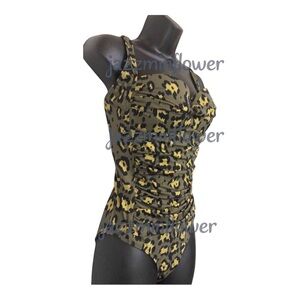 Betsey Johnson green black multi fancy spotted leopard print sweetheart neckline one piece swimsuit size medium new