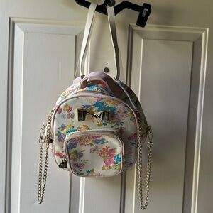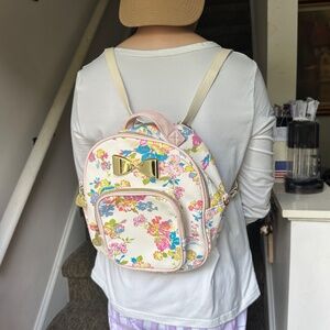 Made of polyurethane with a multicolor floral pattern and a cute bow design.