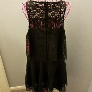 Black, Betsey Johnson lace popover dress with zipper closure in back