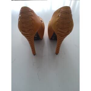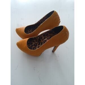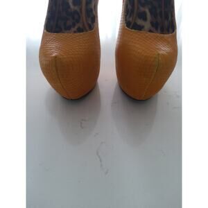 Betsey Johnson leather fall Orange platform high heels Coquette sexy Sz 7.5