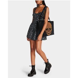 Betsey Johnson nwt kitsch THICK SKULLED TOTE BLACK bag skull stud rivet