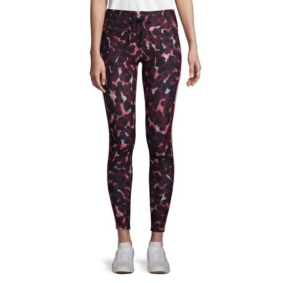 These Betsey Johnson performance leggings in Black/Merlot are perfect for those who love animal print patterns and colorful designs. Made from a blend of polyester, nylon, and spandex, these leggings offer a comfortable high-rise fit with a 29-inch inseam, making them ideal for activities like yoga, running, or gym training. The multicolor design and sporty theme make them a stylish choice for both activewear and casual occasions, while the easy-care fabric ensures convenience and durability.