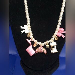 Betsey Johnson pink crystal Homemaker mixer charms pearl necklace new