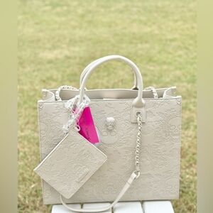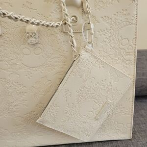 🔹Betsey Johnson "skulltastic" 2 PC large skull tote and wristlet XOKIARA2 white