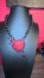 From the queen, Betsey Johnson. Large heart pendant encrusted with bright red and blood red rhinestones. Dagger through the heart. One red Jewel signifying blood droplet dangling from the dagger. On a hematite toned heavy chain. Gothic romance vibes in this stunning statement necklace.