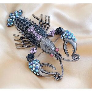 💙 Betsey Johnson exquisite silver, purple & blue crystal lobster brooch. This is soooo pretty. The tail wiggles & shakes, making it glisten even more. The color & detail show it’s beautiful craftsmanship. Add a chain & wear as a necklace Seller fav…Blue Maine lobster 💙
