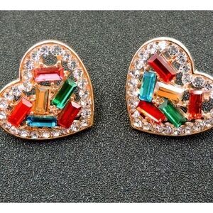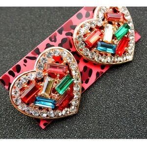 ♥️ Betsey Johnson sparkling colored crystal heart earrings. About the perfect size. Beautiful sparkle & colors look like stained glass. Edged with clear crystals. Lots of sparkle Hypoallergenic & nickel free ♥️ Beauties