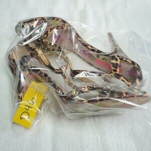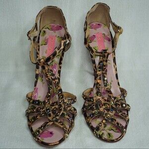 Betsey Johnson sz 8.5M Vero Cuoio Strappy Sandal Leopard Print Rhinestone Heels