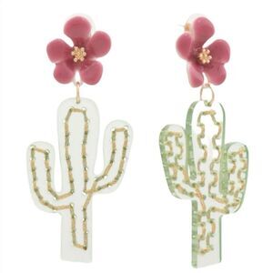 🌵 Betsey Johnson sparkling & shiny flower & cactus dangle earrings. Super stylish with a unique flair. Nice for that tropical vacation or a day at the beach Post backs hypoallergenic & nickel free 🌵