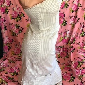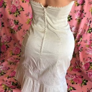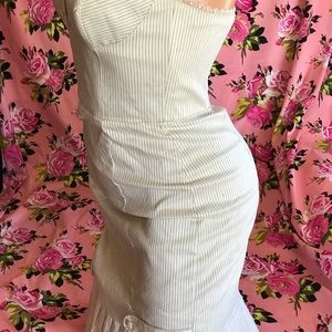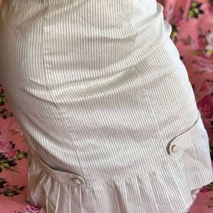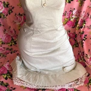 Cream beige strapless pleated lace lined skirt bottom with buttons Pinup dollbaby girl pencil sheath fitted cotton wiggle dress original by Betsey Johnson