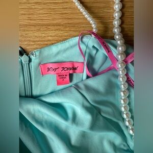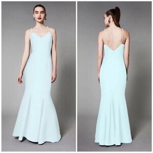 Betsey Johnson x Loren Gray 'Pearl Plunge' Light Aqua Blue Maxi Dress Sz 2 NWT
