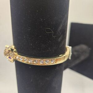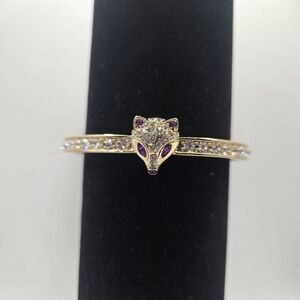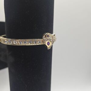 Betsey Johnson Gold-Tone Hinged Bangle Bracelet Fox Purple Crystal Accents