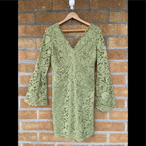 Betsey Johnson Green Lace Bell Sleeve Dress size 4