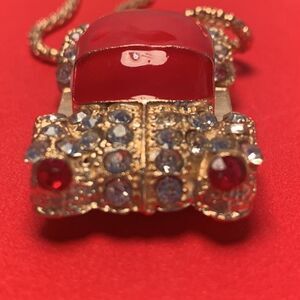 TAGS: betsey johnson necklace classic car jewelry red vintage car pendant rhinestone retro charm quirky whimsical boho glam statement