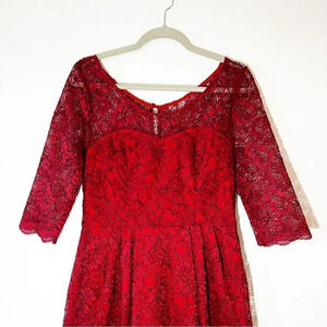Betsey Johnson Red Lace Dress Size 8 Holiday Party Fit and Flare Flirty Festive