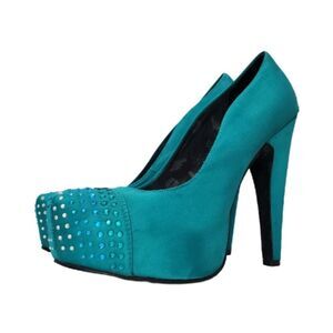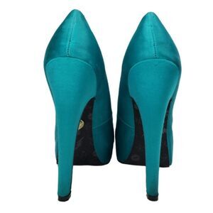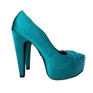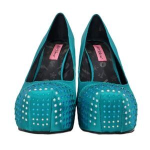 Betsey Johnson Satin Teal Sequin Platform Pump Sz 8.5