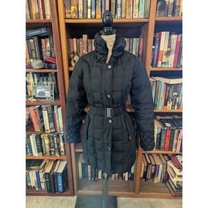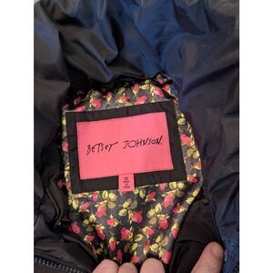 Betsey Johnson Women's xs Black Down Filled Feathers Quilted Puffer Jacket Hooded