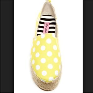 Betsey Johnson Yellow Polka Dot Flouncee Espadrille Platform 9B