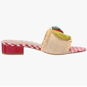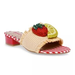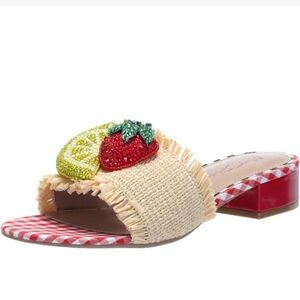 🔹️ Betsey Johnson🔹️nautural Lindyy Fruit Block Heel Bead Embellished Sandals