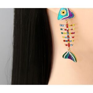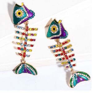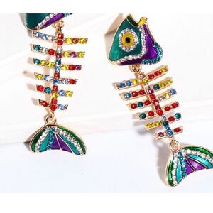 🐠 Betsey Johnson unique & colorful fish bone dangle crystal earrings 🐠