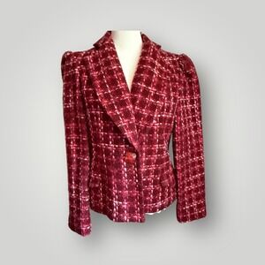 Betsey Jonson NY Sz Small Vintage Pink Tweed Wool Notched Collar Fitted Blazer