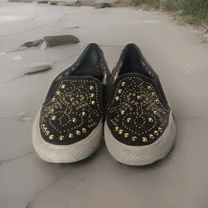 Betsey Johnson Aime Studded Canvas Sneakers Shoes Women's Sz 8