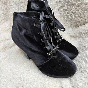 Betsey Johnson Betseyville Velvet Platform Laceup Booties sz 10