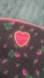 Stylish black cosmetic bag with pink floral pattern. Features a heart-shaped logo detail. Ideal for organizing beauty essentials.