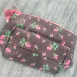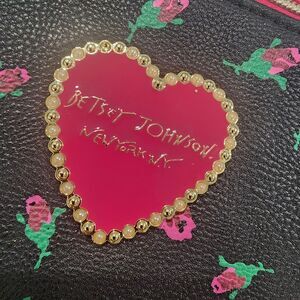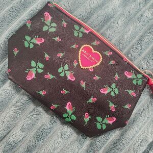 Betsey Johnson Black Cosmetic Bag with Pink Floral Design
