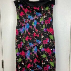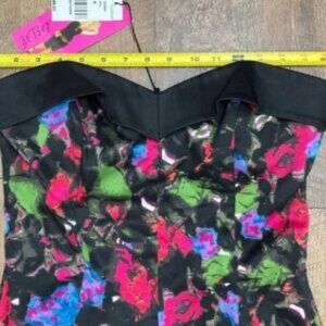 Betsey Johnson Black Pink Blue Green Abstract Floral Sweetheart Strapless Mini Dress Sleeveless Retro Artsy