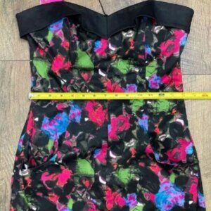 Betsey Johnson Black Pink Blue Floral Sweetheart Strapless Mini Dress sz 8 NEW!