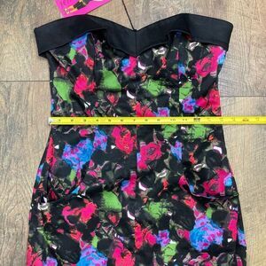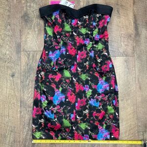 Betsey Johnson Black Pink Blue Floral Sweetheart Strapless Mini Dress sz 8 NEW!