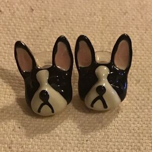 Charming dog-themed ceramic earrings featuring a black and white design with gold accents. Perfect for pet lovers.
