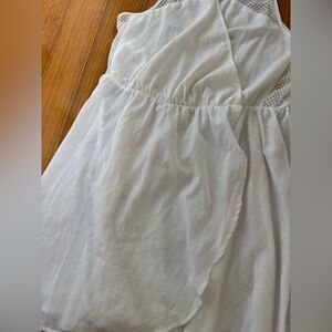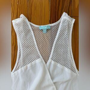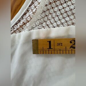 Lightly worn. White in color. Lightweight. Mesh detailing. One small mark in front (pictured). Size L