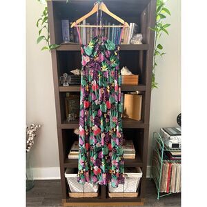 Betsey Johnson Paulina Tropical Print Animal Jungle Maxi Halter Dress Size Small