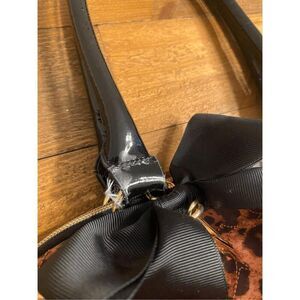 Betsey Johnson Sateen Cheetah Print Satchel bag purse tan black bow