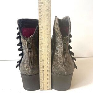 Betsey Johnson Seal Ruffled Brown Distressed Look Leather Back-Zip Western Ankle Bootie Women's Size 7