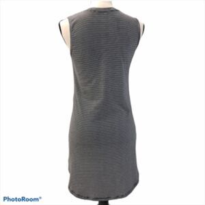 Black and white striped sleeveless tunic with long slits up the sides. In good used condition. Size XS. 0190