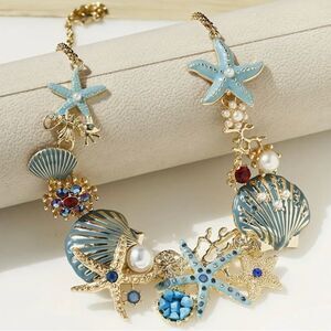 💙 Betsey Johnson 1pc Boho Beach Style Necklace, Alloy with Sparkling Rhinestone Accents, Shell Starfish Coral Pearl Clavicle Chain, Unique Design for Women, Versatile for Vacation/Party - All Seasons, Stunning Design 💙