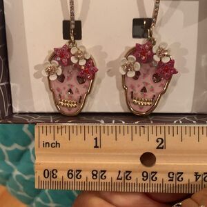 Betsey Johnson Fancy Sugar Skull Pierced Earrings 3D Halloween