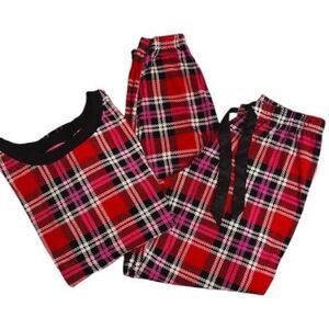 Betsey Johnson Y2K Pink Red Plaid Long Sleeve Pajama Pants Set Medium