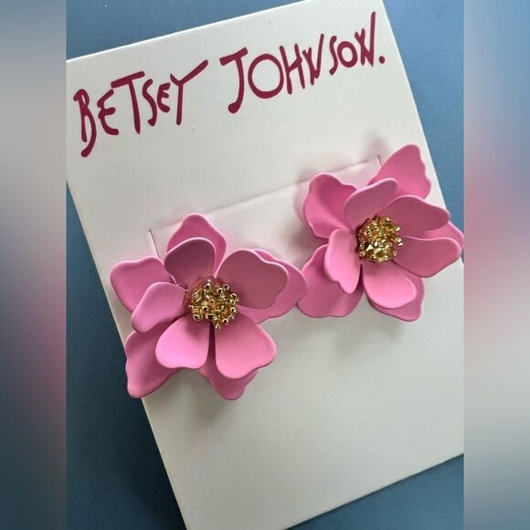 🌸 Betsey Johnson pretty in pink petals flower earrings. Nice craftsmanship with nice little details. They actually have great shine with gold accents. Hypoallergenic post backs 🌸