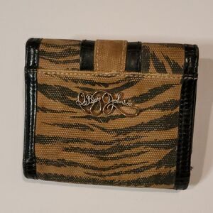 This is a Betsey Johnson animal print wallet. It has many slots to store your cards, receipts, notes, and money. The first card slot is loose on one side just a bit.
