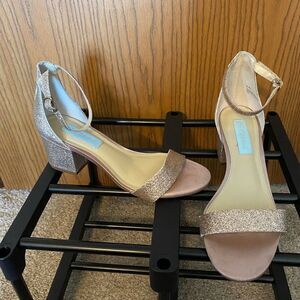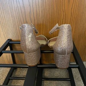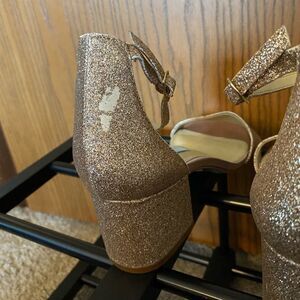 Upgrades a sweet and simple evening design with a flashy glittering finish in the Miri sandal
