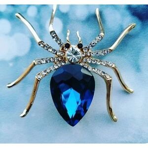 💙 Betsey Johnson Statement Crystal Blue Spider Brooches Rhinestone Insect Pins & Brooches Elegant Accessories to match all Styles. This is stunning & sparkling 💙