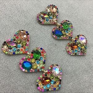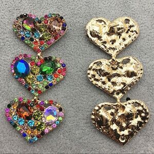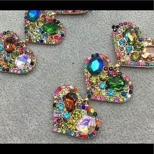 💗 Betsey Johnson gorgeous sparkling crystal embellished dangle heart earrings. Simply stunning with multicolored stones. Stud backs hypoallergenic and nickel free 💗