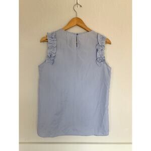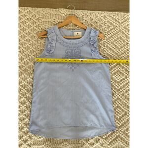 Betsey’s Boutique Blue White Stripe Embroidered Ruffle Tank Blouse Preppy Small